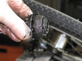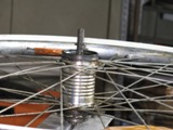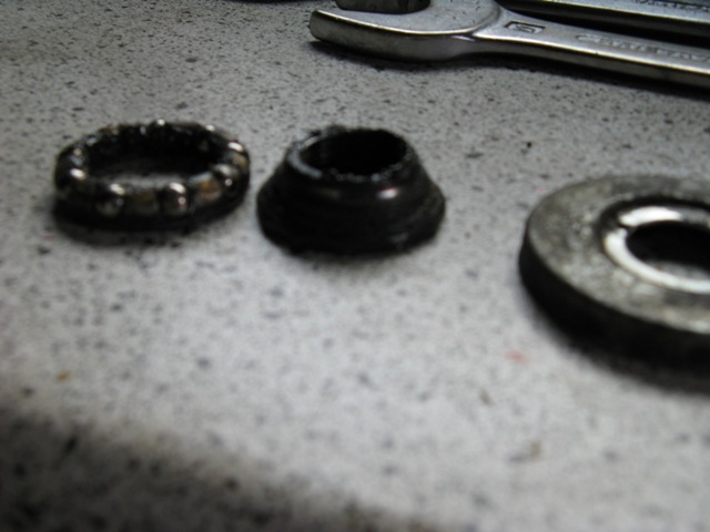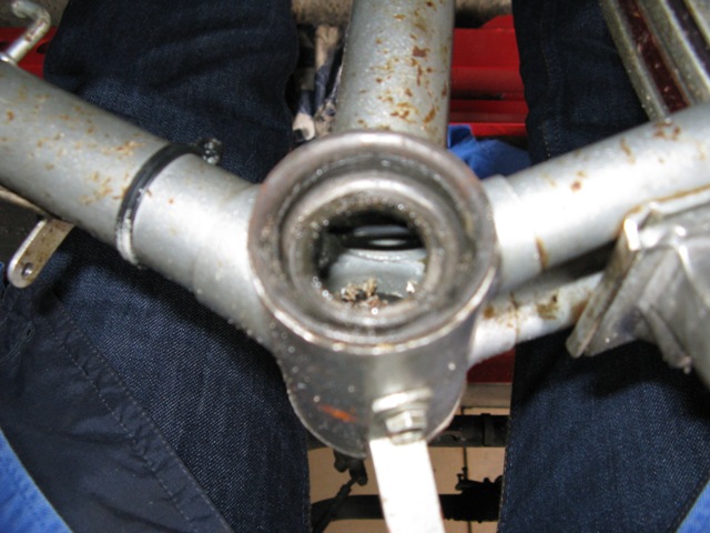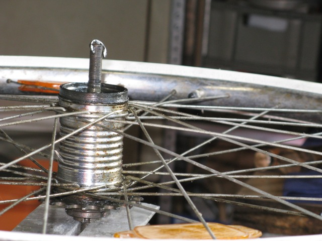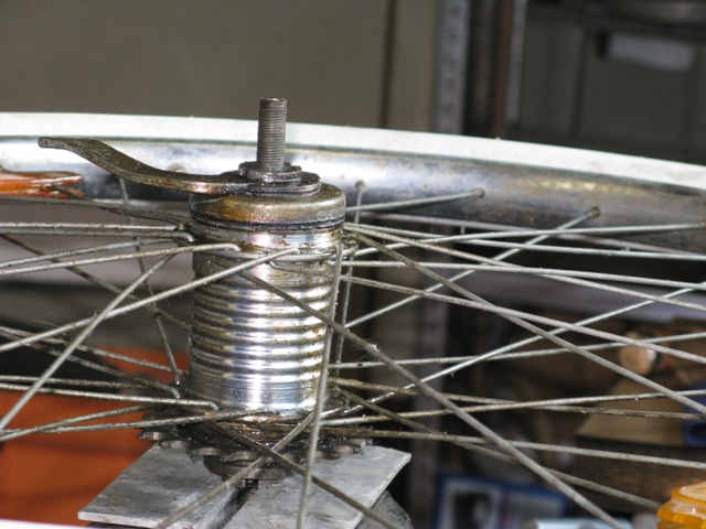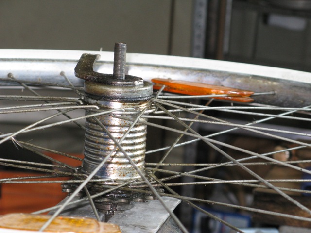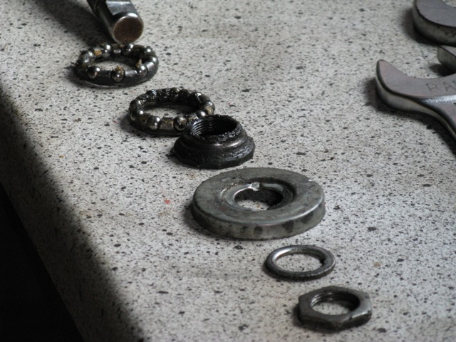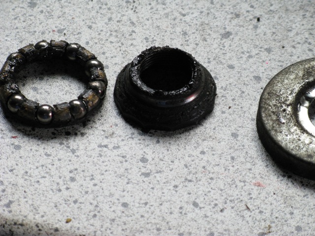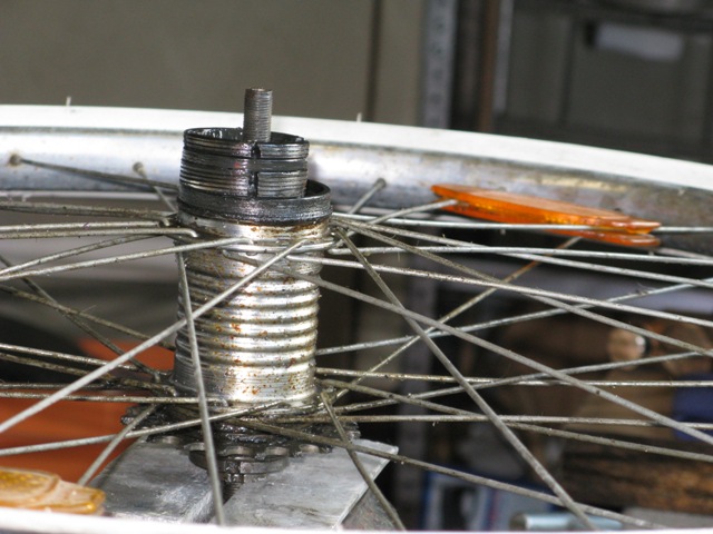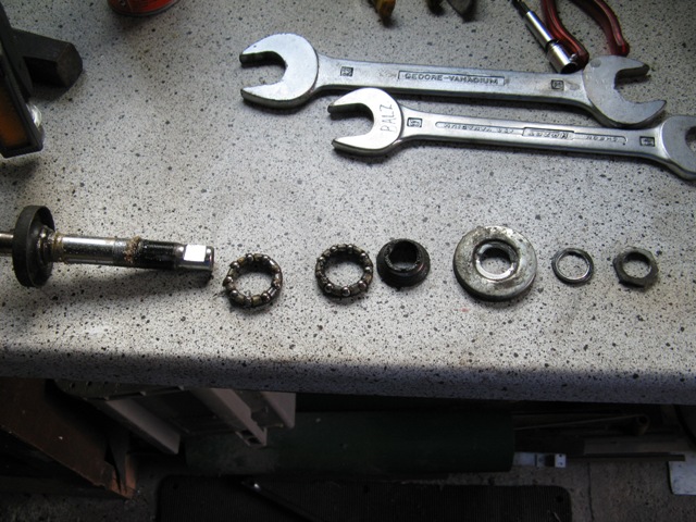 Das Tretlager hat auch ein wenig gelitten und zeigt Kerben, da ich dort aber keine Gnade kenne habe ich sie wieder montiert und die werden so lange laufen bis es garnicht mehr geht. Die Tretkurbelkeile waren so fest das sie nur mit roher Gewalt sich rausschlagen liessen, dies hatte zur Folge das ich diese ersetzten musste. Nicht einfacher als das, dachte ich. Jedoch gibt es die Keile in ca. 3 verschiedenen Ausführungen, die keiner der vier Fahrradläden hatte. Aber nach einem Gespräche mit einem Fahrradhändler habe ich mich entschlossen die Auflagefläche nicht durch Feilen wieder zu vergrößern wie notwendig, sondern sie abzufräsen. Ich hatte ca. 2004 eine kleine Fräse mit Drehbank geschenkt bekommen, nun konnte ich sie endlich einsetzten. Es klappte prima und alles läuft wieder.